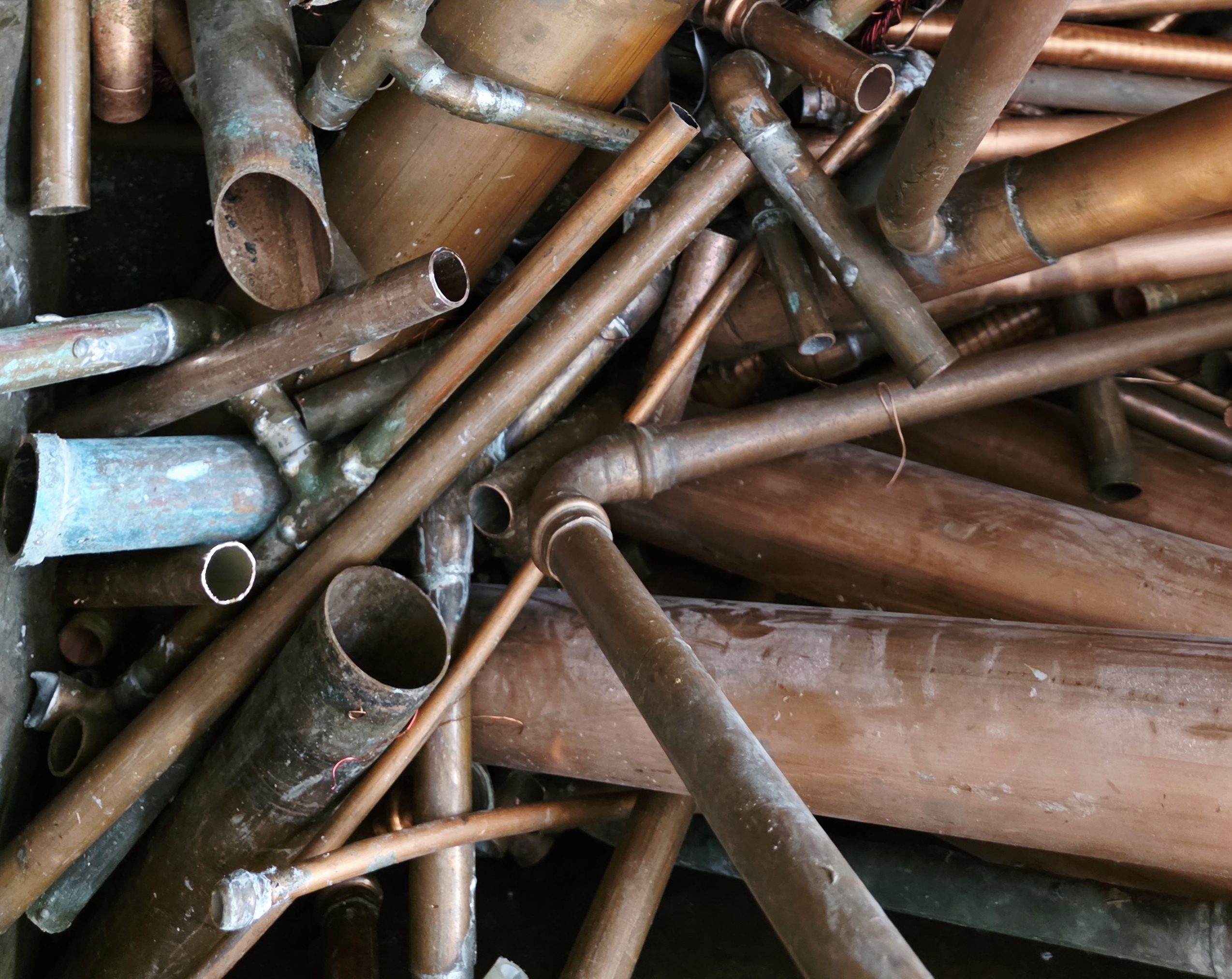Assorted copper tubes stacked together